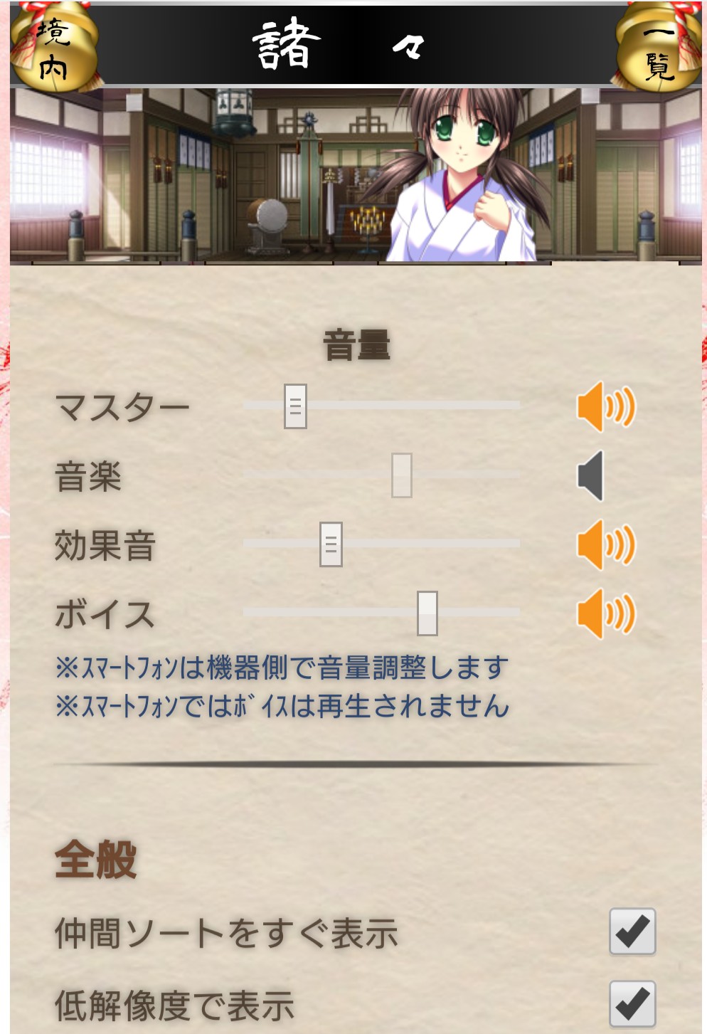 逆にこちらは諸々に設定の表示がでてませんね