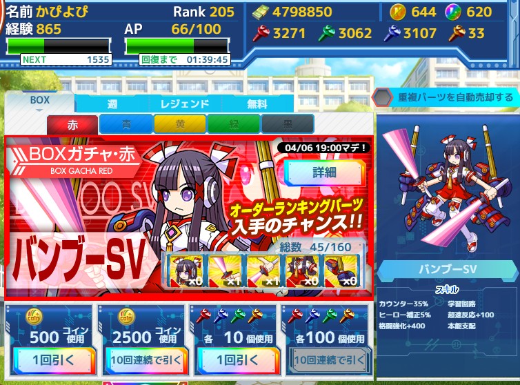 期間中何度も金ネジが尽きましたが、最終的に500以上貯められました。フレンドの皆様ありがとうございました。