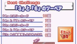 3&6ツーペア以外はコンプしてる、Qスリーカードと10フルハウスは13回成功したものの、3&6ツーペアはまだ5回…あと一つの貯めに最低5周しないといけないというきつい状態です…