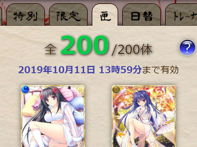限定召喚を行ってみたんだが・・・・案の定URは来なくて、代わりに既存SRの和魂さんと雪女・なずなが来た。