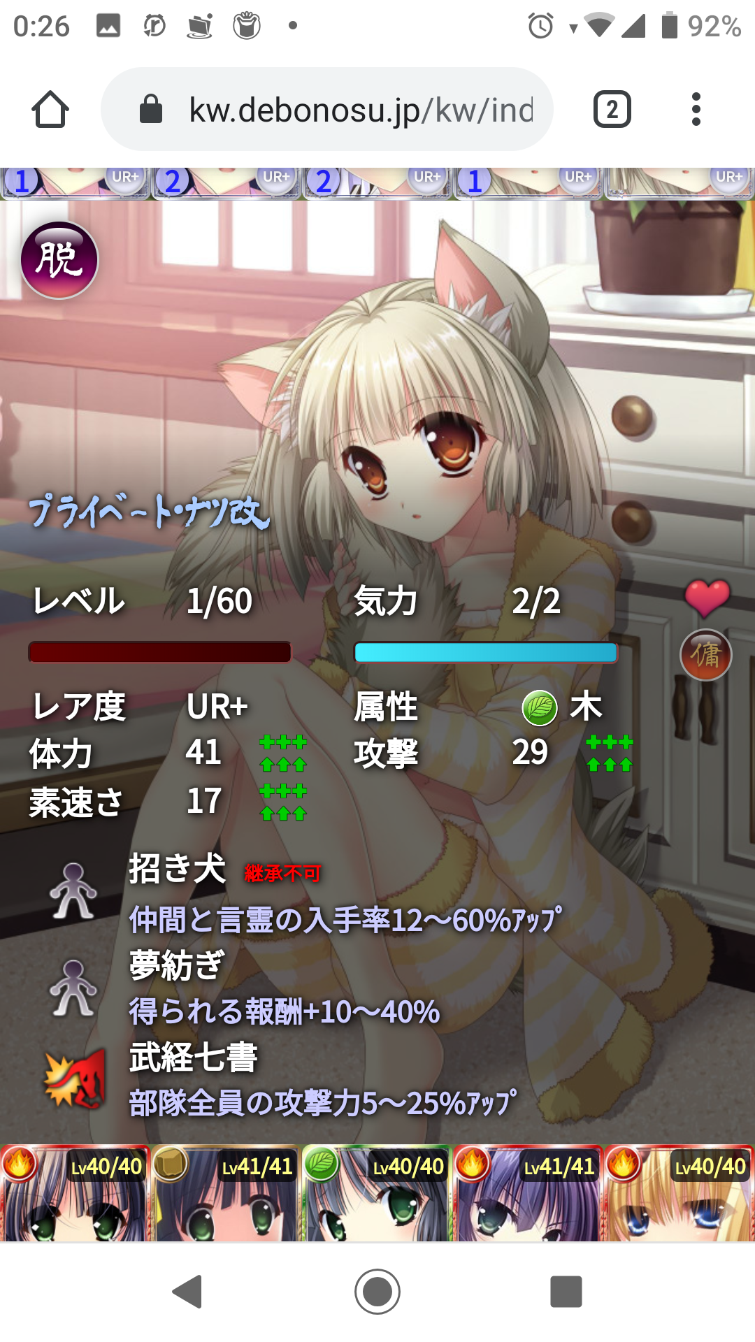 ところが招き犬だけはURのナツ様の2種類とSRの新緑以外に持つことが出来ないので、大当たりです。