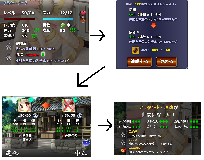 でも、交換勾玉が1個で1回しか交換できませんので、先を見通した部隊運用計画を立てながら