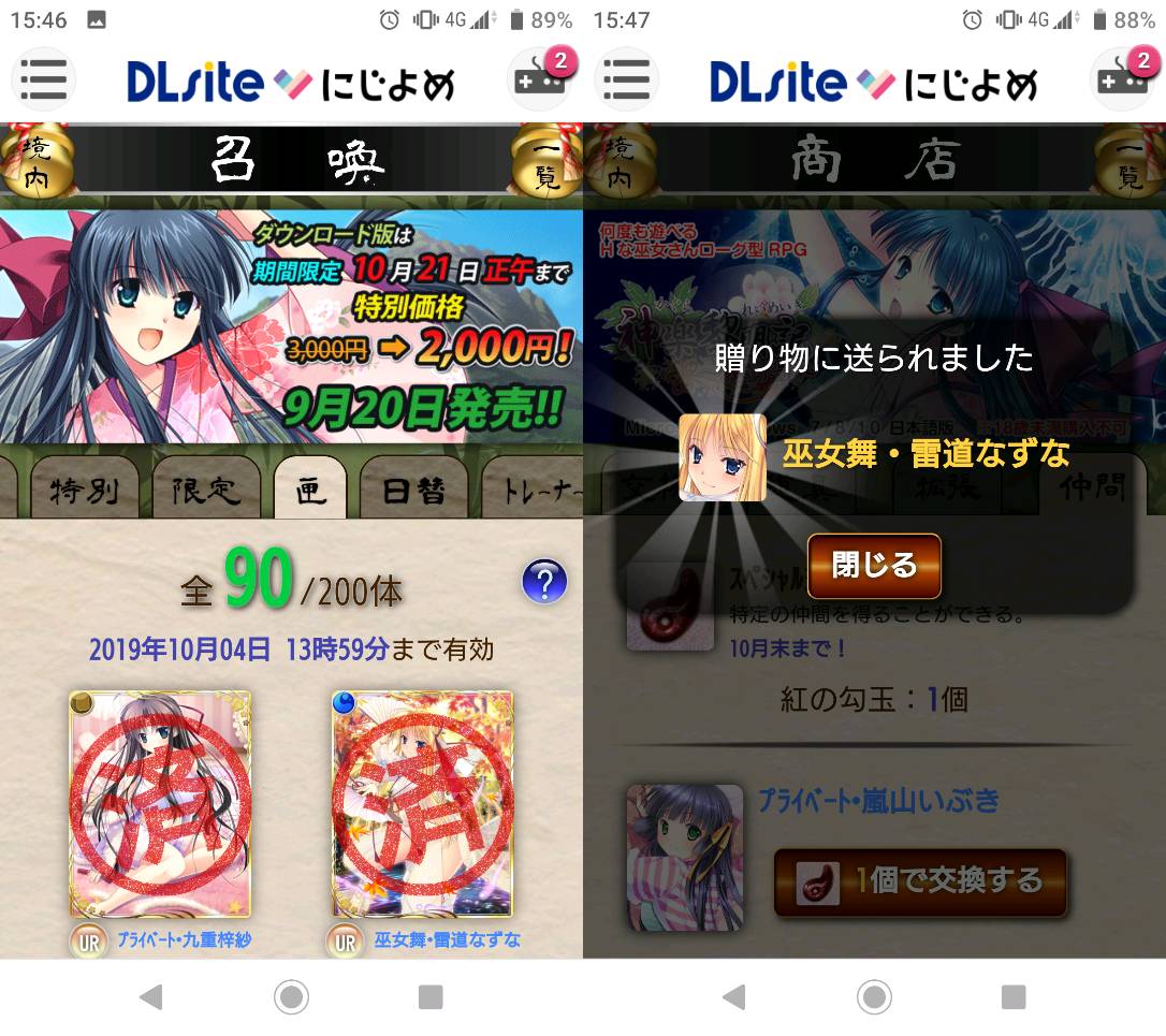 限定甲(サービス価格)11、乙20、巫女召還23で
