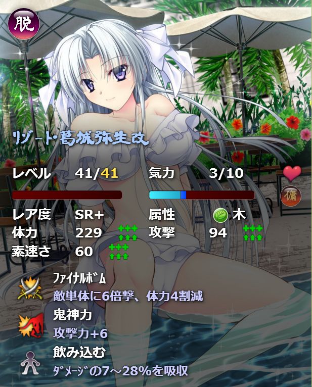 更に22個あった巫女召喚書全弾放出でようやくリゾートの弥生が1枚来ましたが・・・脱ぎ解放の魔力というか魅了は怖いですね。