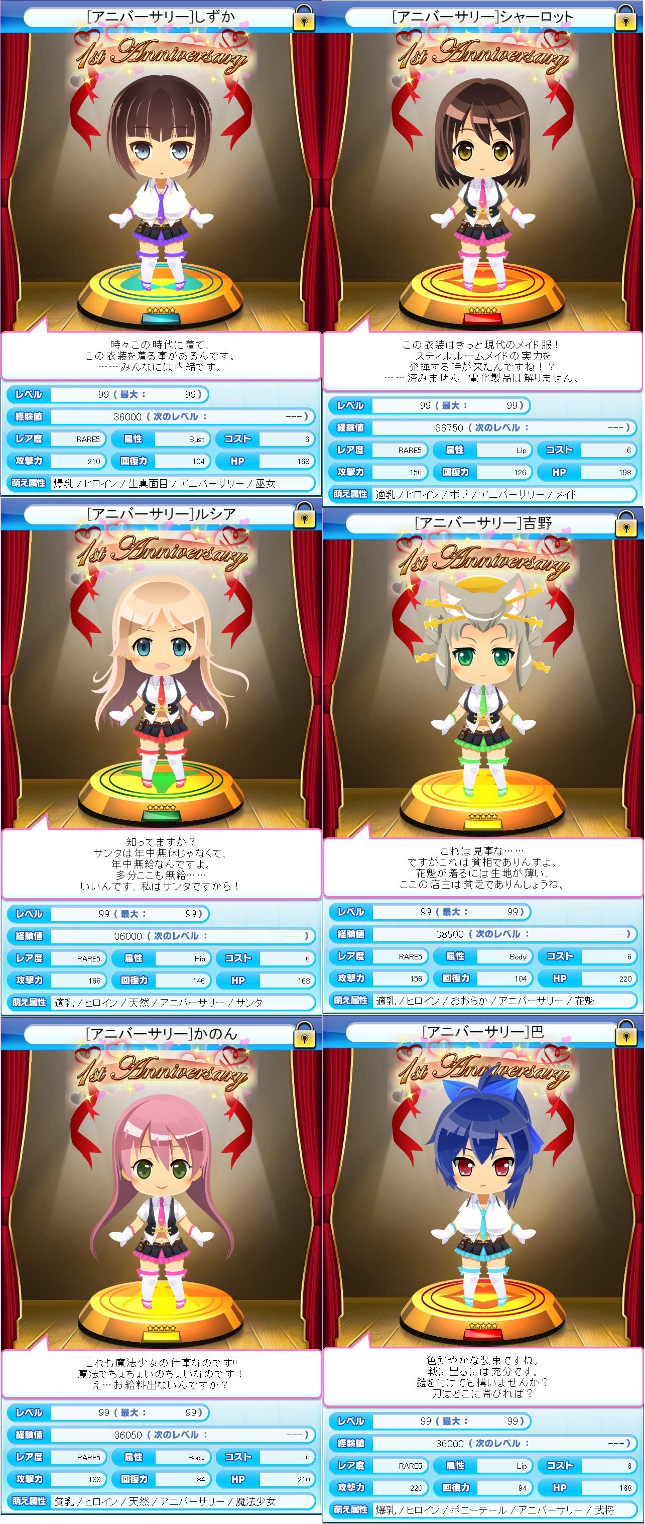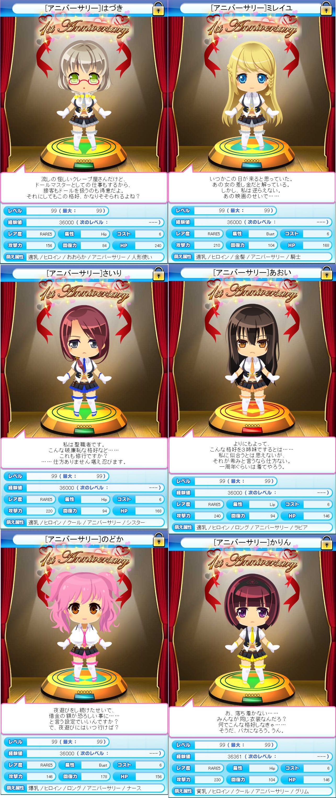 DMM版ではアニバーサリーは毎回マイナス補正かかってて全く使い物にならなかったから、今回は違うといいなぁ。 -