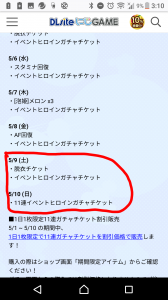 GWガチャチケはグループBで11連チケ1枚、日付が変わって残りを使った結果