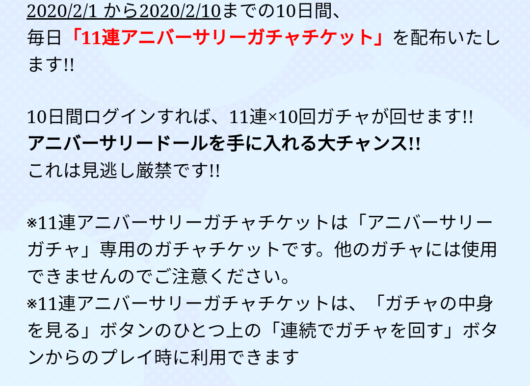 皆さん順調にアニバーサリードールを手に入れているようでおめでとうございます。