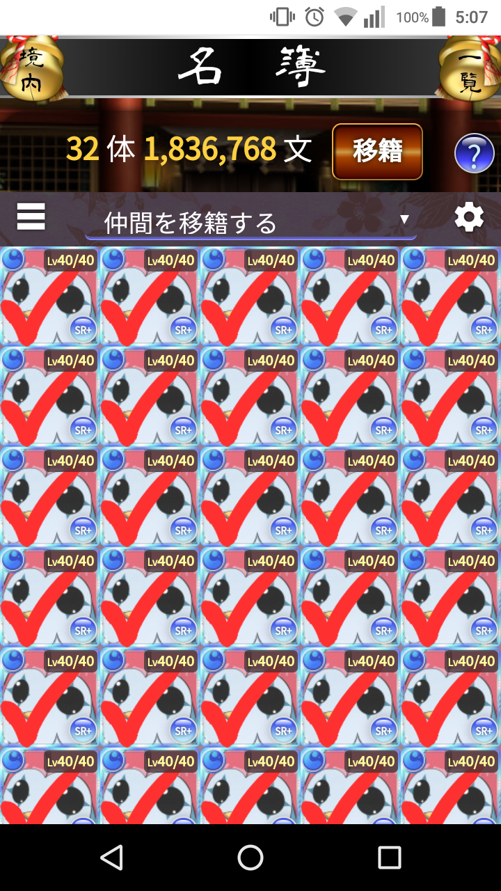 SR+をLv.45にする踏み台餌以外に(ユーザーによっては)大量に余り始めたSR妖怪の