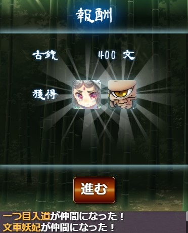 部隊員のLv.が低いのを1~2入れてようやくお目当ての妖怪が落ちて来た事もあったり・・・(謎