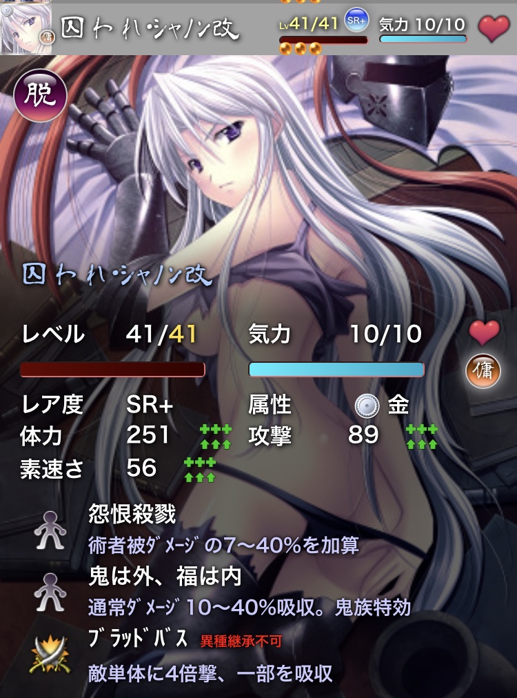 長らく放置していたSRドロップ周回を始めましたがいきなり濡れ女で躓くと言うw最低2枚いるのに全然出ない…