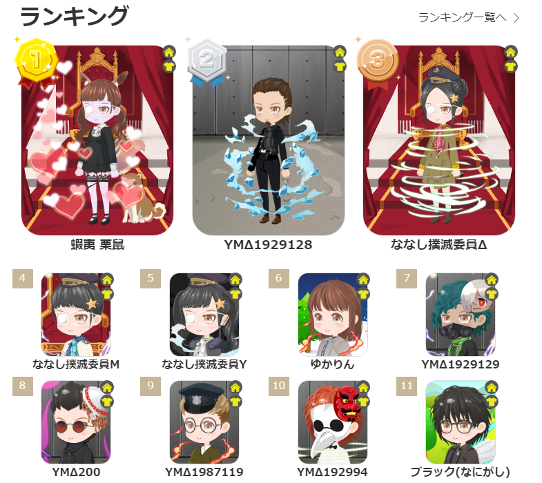現在プレイヤーさんキャラはアバターランキングのランク外だと