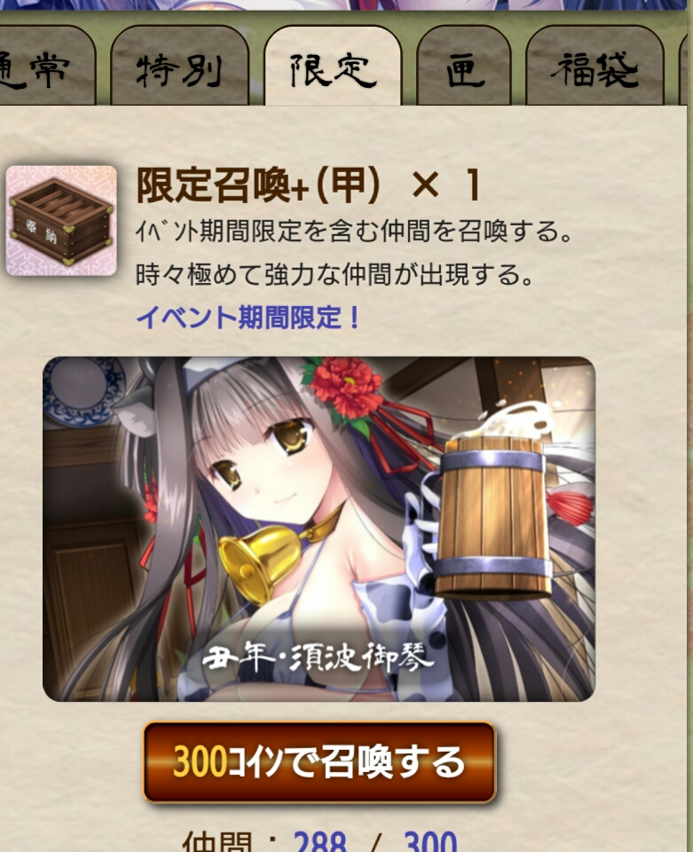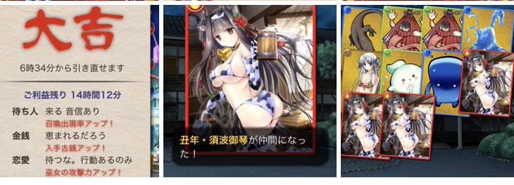 初ガチャで巫女舞ナツ様ゲット。今年は運良さそうだ!(別ゲーのガチャで400連爆死した事実に目を逸らしつつ)