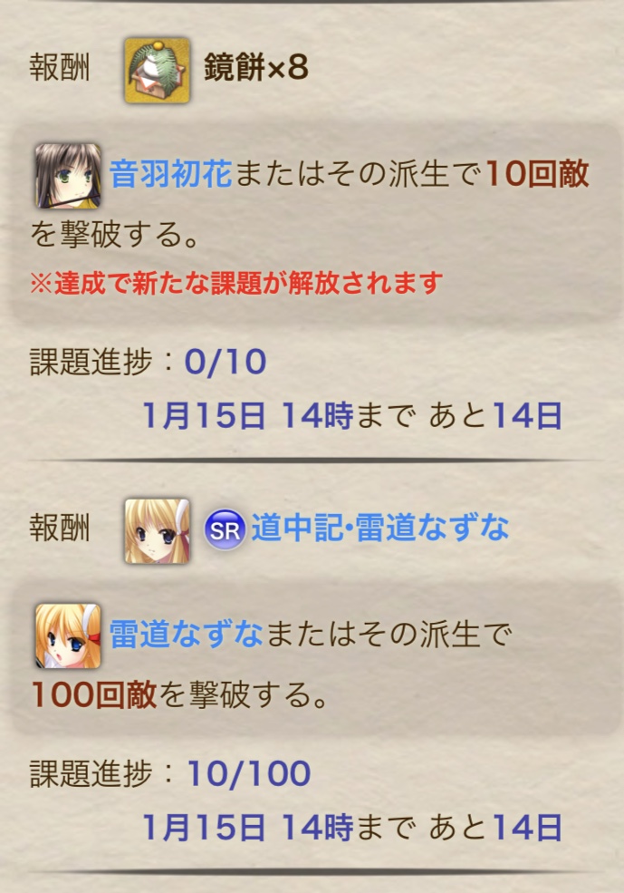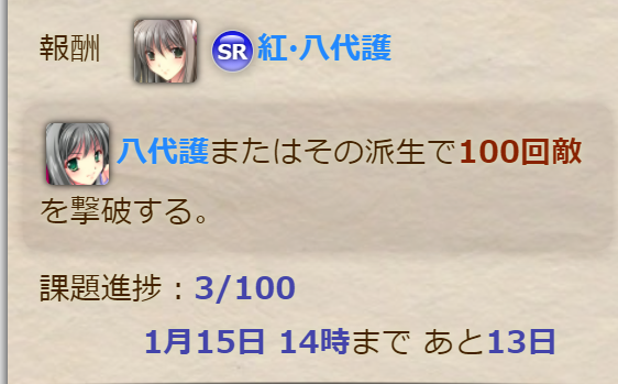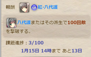 先に初級~上級課題を総て完了させてイベント課題の特定指定巫女10回/100回撃破に時間を割いているけれど、