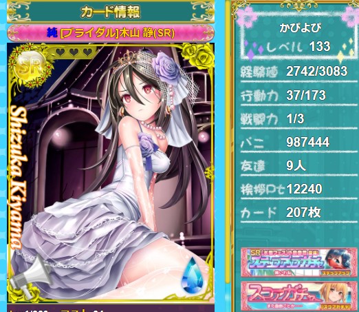 スコアアップガチャは多少マイナーなキャラやシチュ展開でもランキング争い勢のニーズが高いのでもっと色々と冒険しても良さそうですよね^ ^(レアガチャにはマニアックなカードが搭載されることになりますが) -