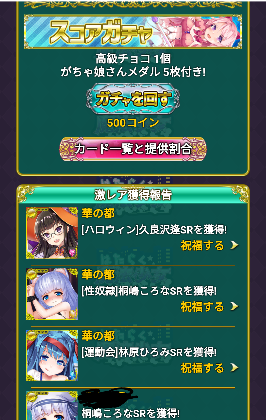 私はスコア、ステップアップ両ガチャでSR0,HR3なので