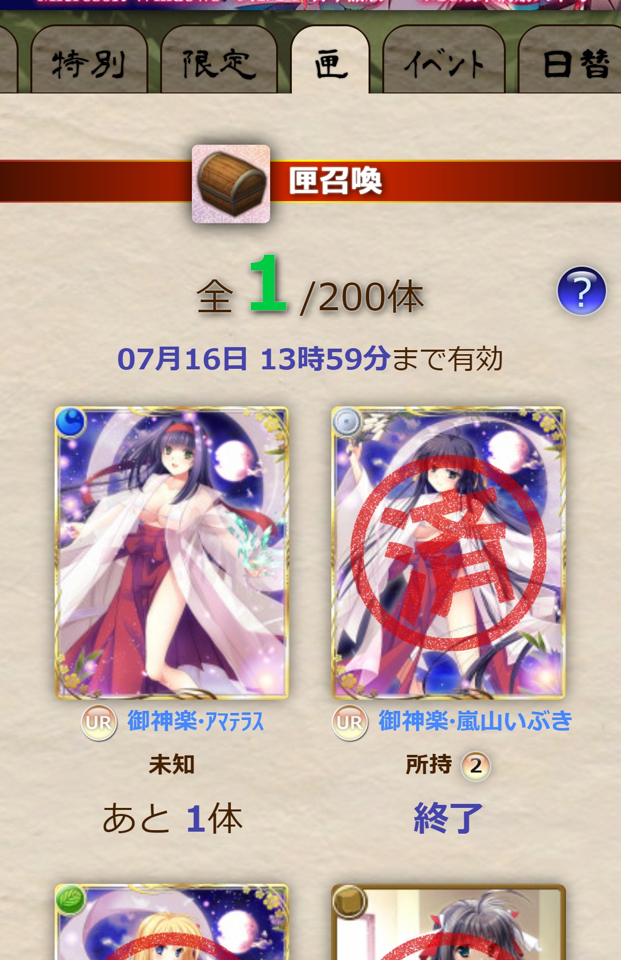 御神楽アマテラス1枚だけでも来てくれたら御の字かな? -