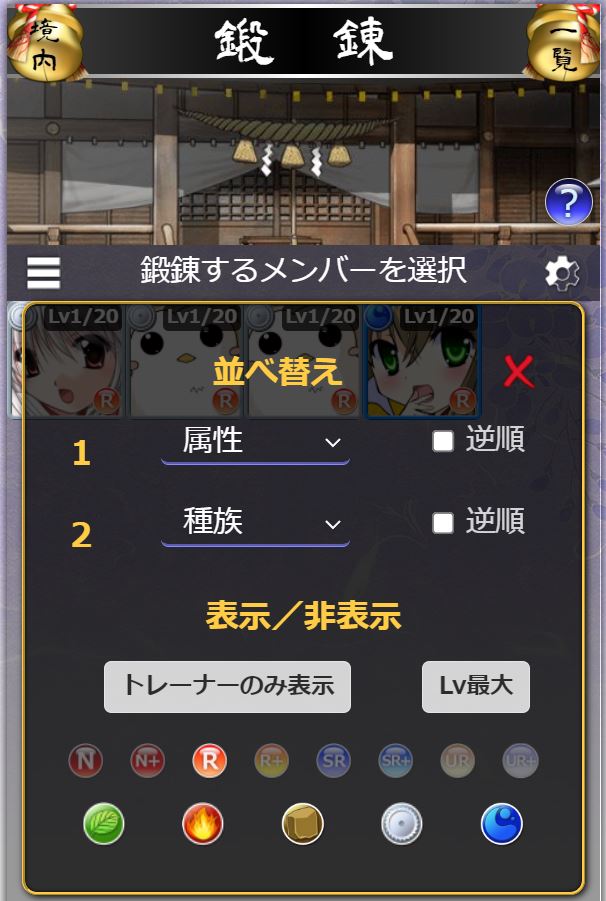 プチやでぼをお務めで集める際に思うのが、名簿の非表示にプチ、でぼを表示にする設定が欲しいなって思います。