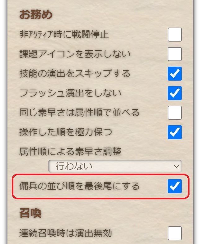あまり設定が細かく増えるとアレですので、絞り込みの『傭兵は常に先頭』でご容赦下さい。 -