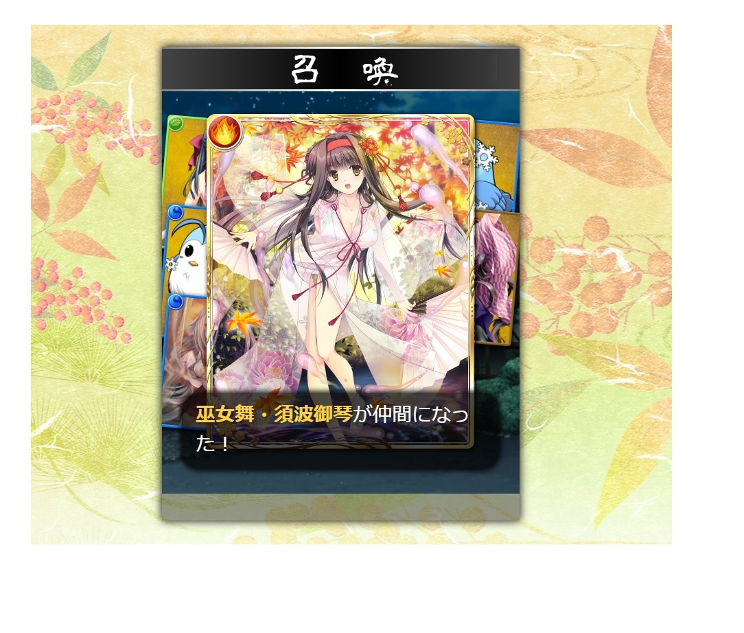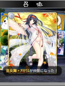 UR:巫女舞AMATERASU ・・・いいなー、碧の勾玉交換品のしかないから是非に引き寄せたいURなのだが、