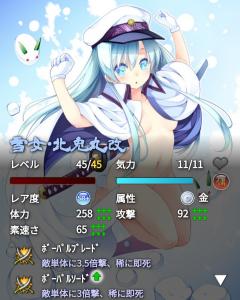 北斗丸出現率も高いからよくドロップするけど、出番を食われてるのか雪女巫女があんまり出てこない気がしますね。今のところ奏1枚しかドロップしてない。(黄泉比良坂よりレポート中)