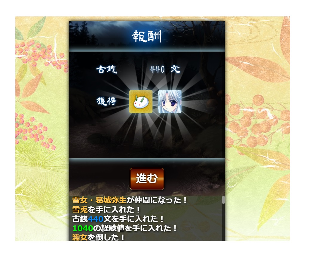 北斗丸以外の雪女(SR)が出てきた場合は、雪兎確定です。確率で雪だるま(雪兎×10と同等)。 -