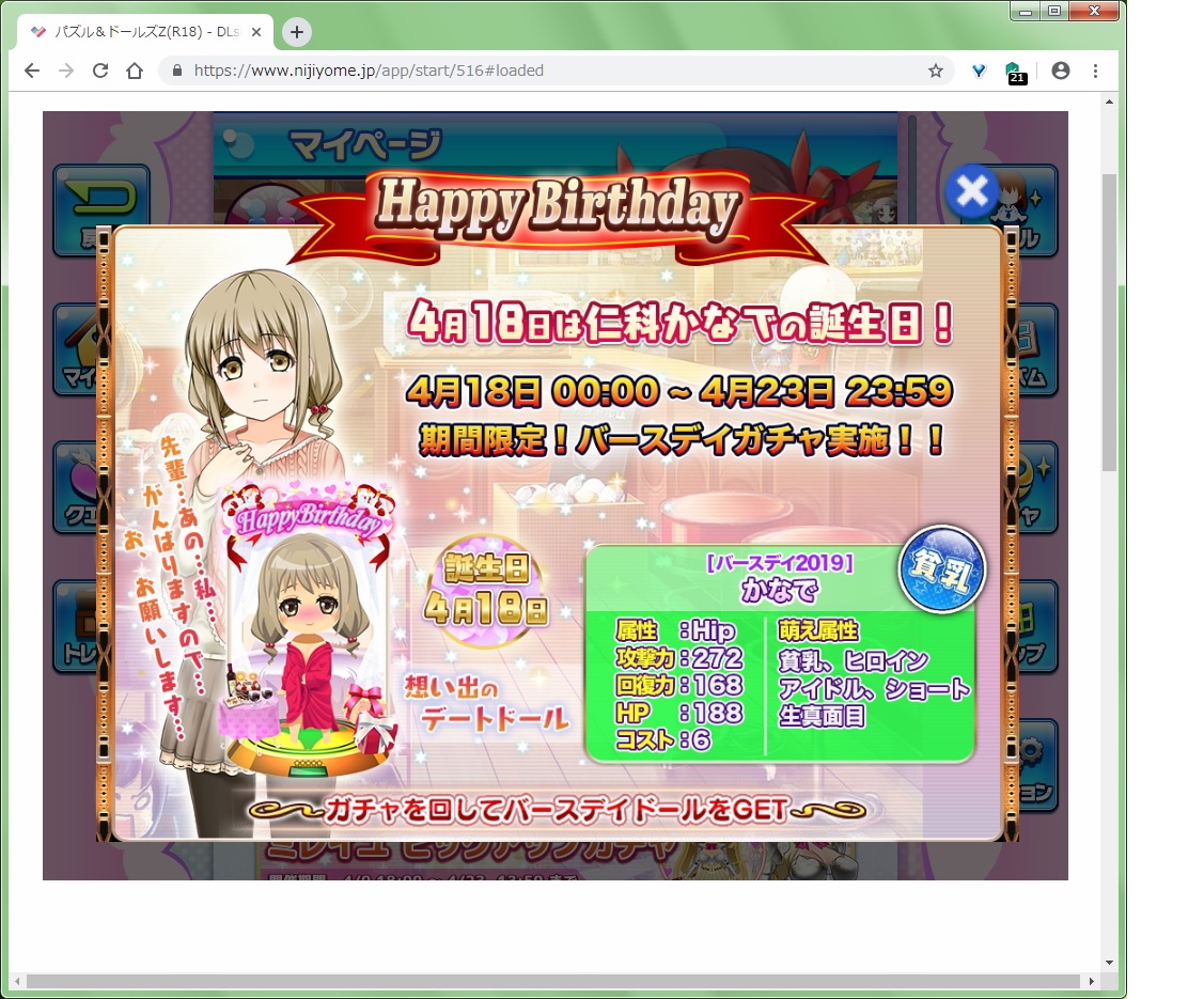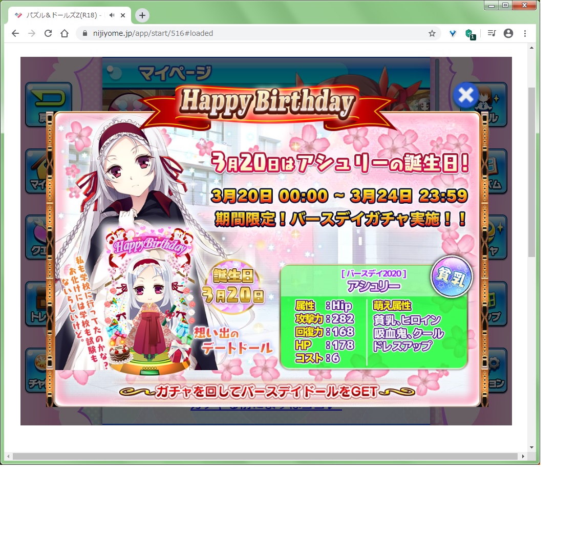 で、その誕生日ヒロインを確認してみたら