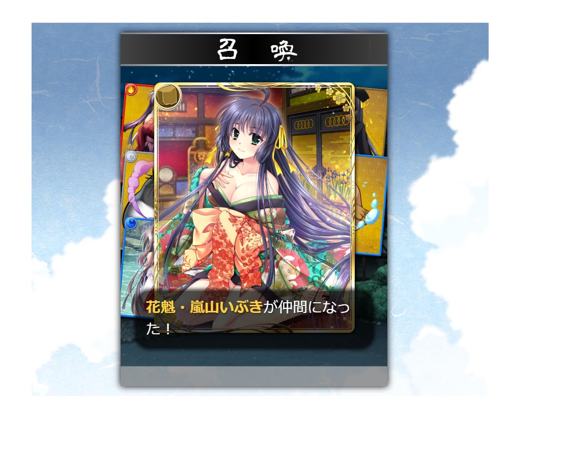 なんと1手目の10連でいきなり「花魁・いぶき」が10枚目にご降臨された!(添付参照)