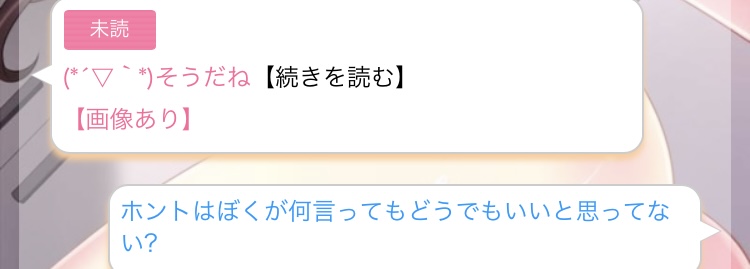 チャットゲーとはいえ流れがあるのは当然なんだけど急に相手がさもこっちから言ったように聞き返してきて無理やり話作られるとちょっと萎えちゃう