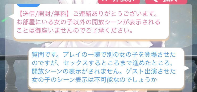 この前ので別の女の子の開放シーン表示頼んどけば良かったかな……でも、運営側の負担が凄くなりそうだな…… -