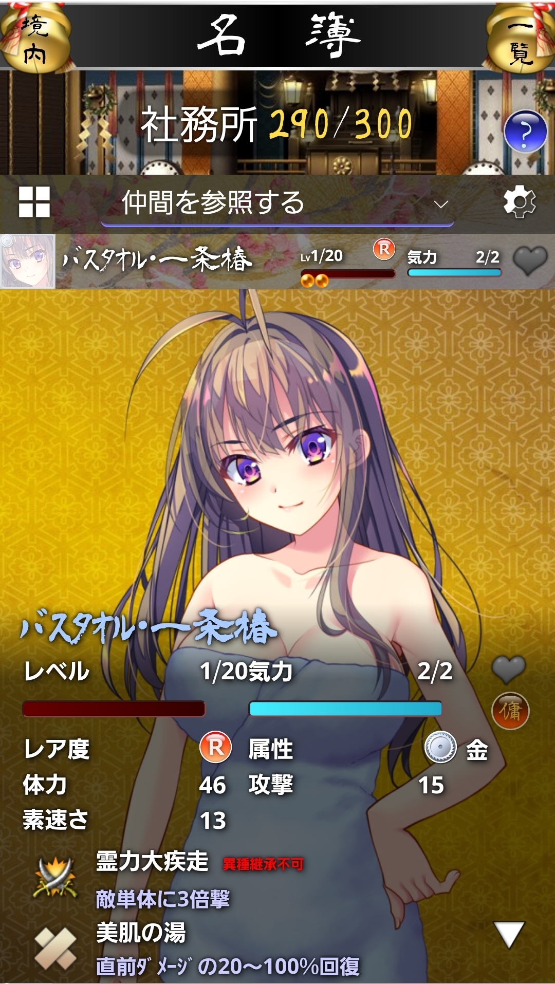 社務所・宿舎の整理をしていた時に偶然スキルが違うバスタオル椿ちゃんを見つけたのですがこれはどうすればよいのでしょうか?(本来のスキルは焔一刀)