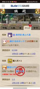 課題の真上久遠で10体倒すの報酬が
