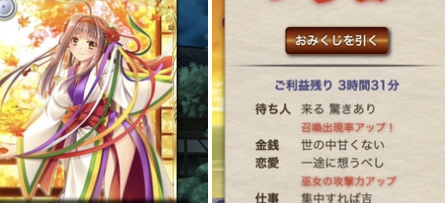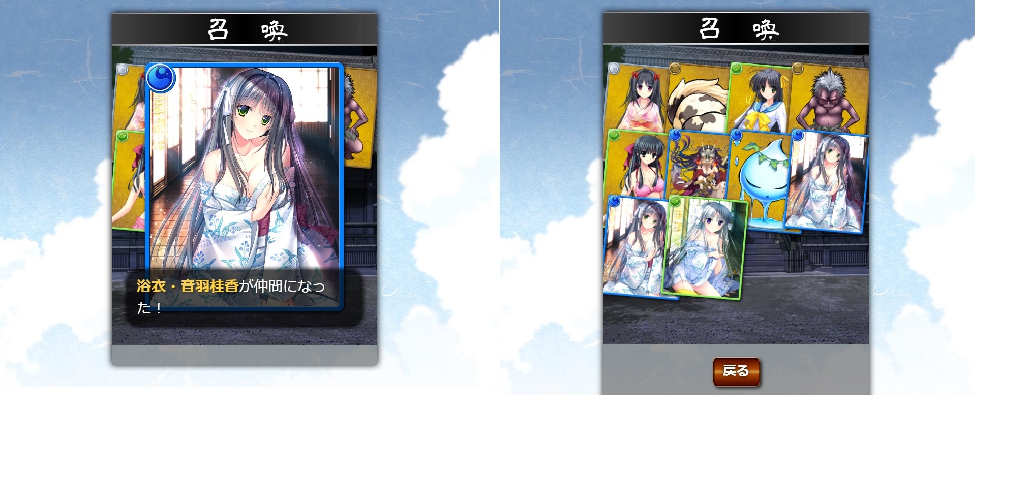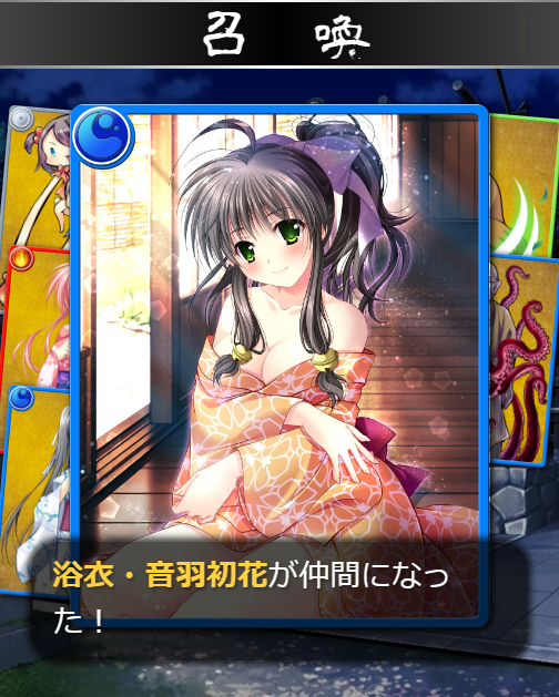 課金と巫女召喚追加して40連した結果、新SR・URは 浴衣・音羽桂香 1枚のみ。