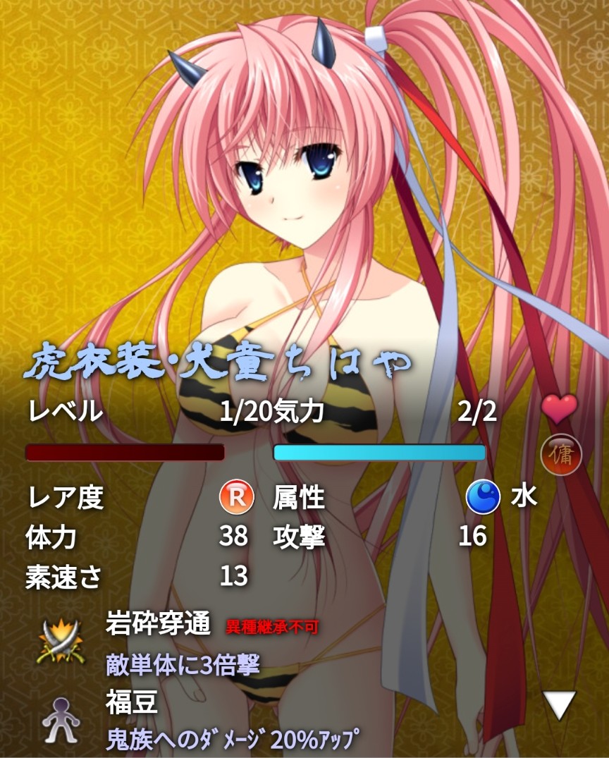 虎衣装に関しては、今回のイベント後でもガチャの他に「鬼三兄弟の挑戦」拡張層で取れる…かもしれません、希望した虎衣装巫女が来るとは限らないのですがある程度はドロップしますので。