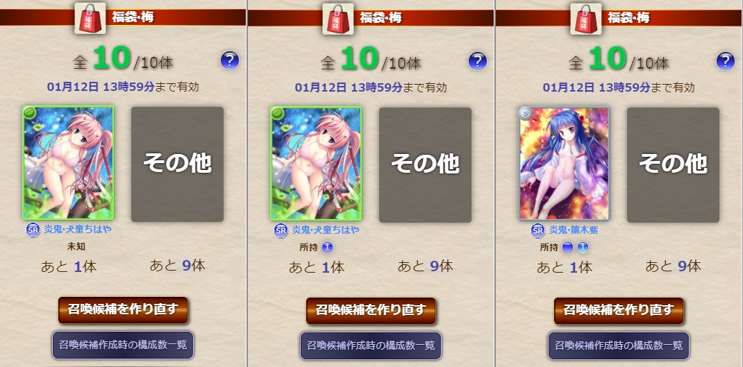 みなさま、福袋・梅でどの娘を狙います?よろしければ教えて下さい m(_ _)m