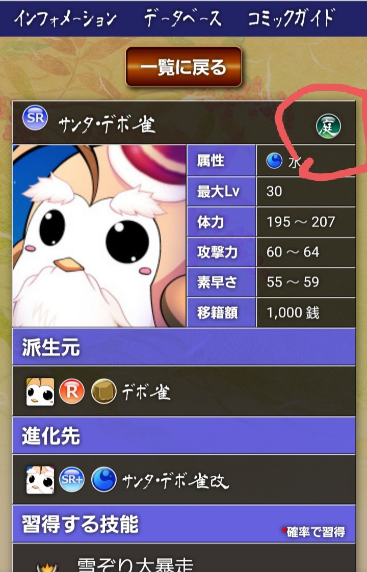境内やカットインで専用CGが出る仲間には『庭』アイコンが付きます。