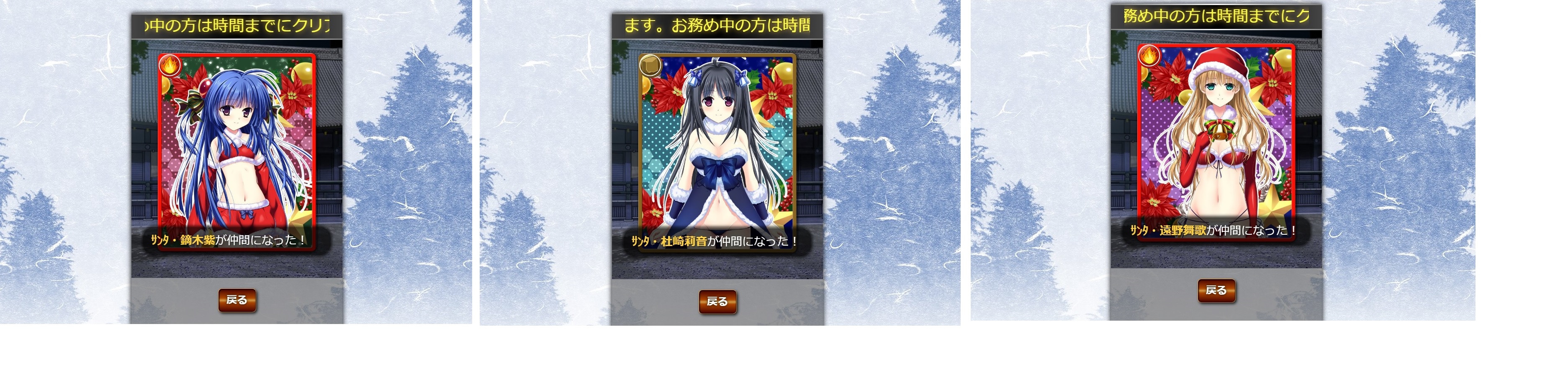 (ちはやは来なかったが)新規サンタ巫女3名各1枚お迎えできました。