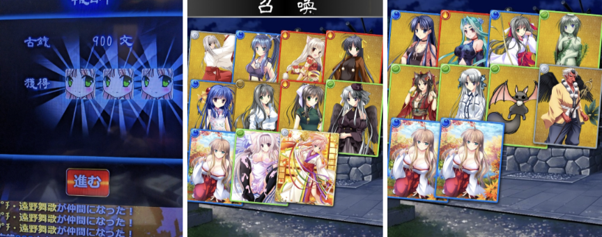 紅葉×10連+にじコイン×11連で五色布・ちはや×1、紅葉・舞歌×3GET!