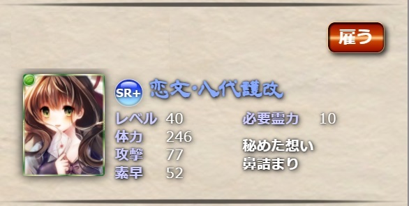以前、SR恋文に「秘めた想い」と「鼻詰まり」をセットにした傭兵を見かけて