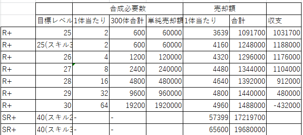 300体集めるだけでも大変なのに、R+にした上にレベルの上限もMAXとは…