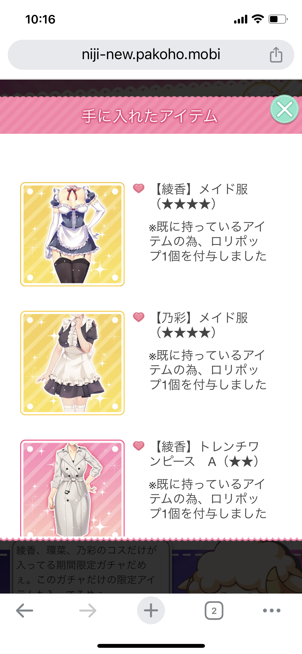 かれこれ2年半くらい最初の10連だけガチャで回してるけどいまだに「ピックアップの☆4」だけは出ないんだね。仕様だろなぁ?