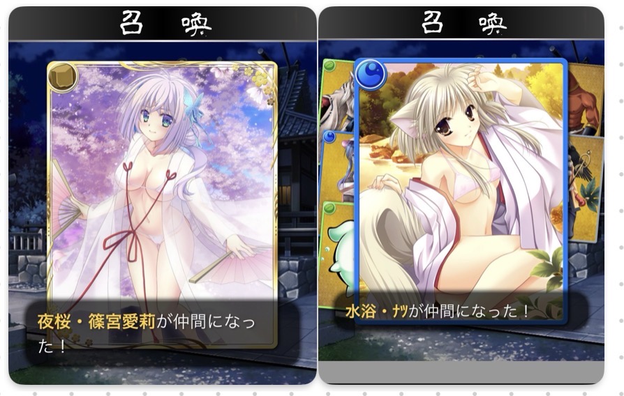 Rと同じかは分かりませんが、サンタ、囚われ、出雲、七夕はSRにしてはよくドロップしますね。